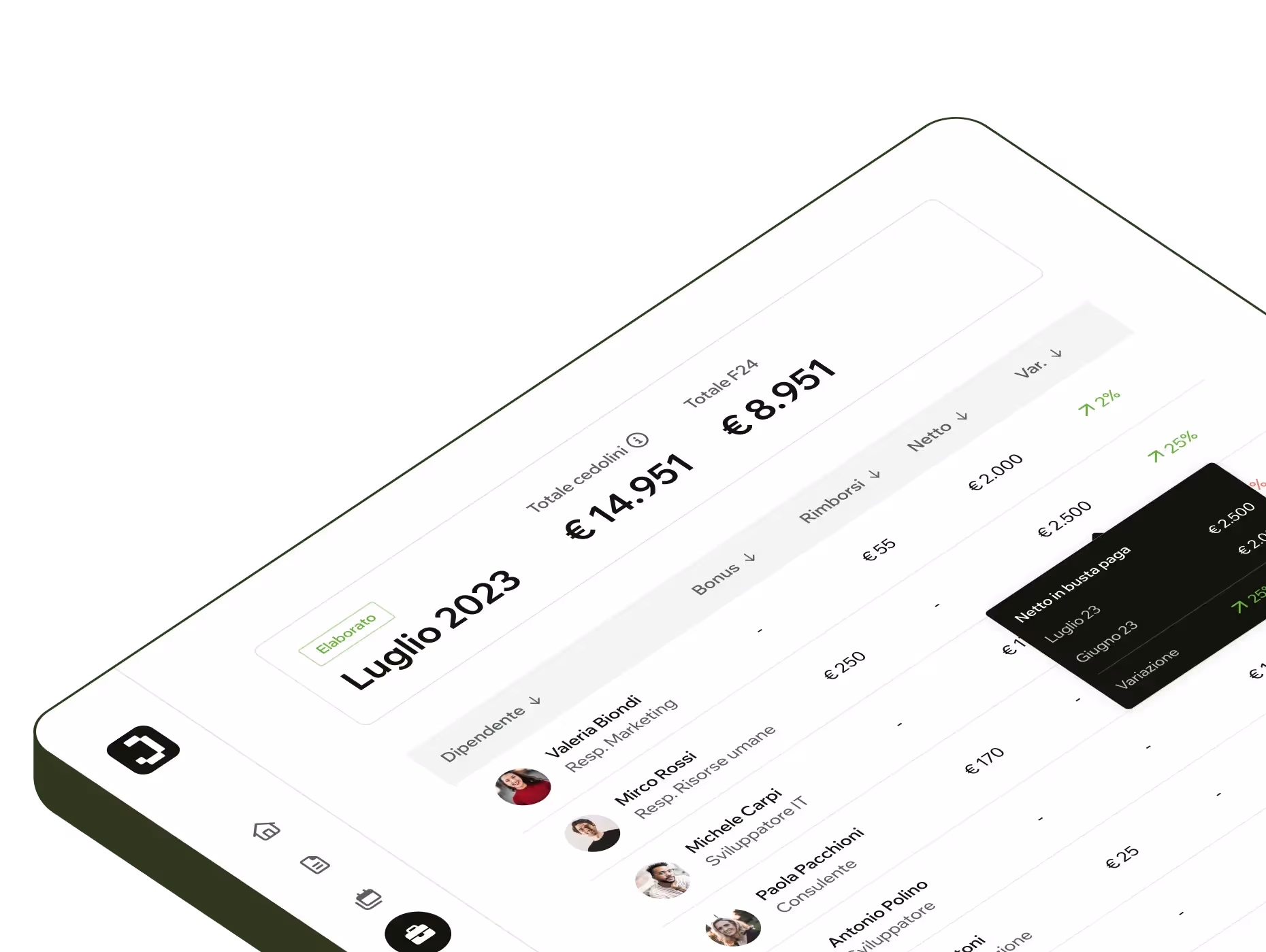 Affida la gestione delle buste paga ai consulenti del Jet HR Partner Network, lavorando sempre dentro la piattaforma Jet HR. Tu hai il controllo dei dati e dei processi, loro si occupano dell’elaborazione. Paghe corrette, puntuali e senza burocrazia.