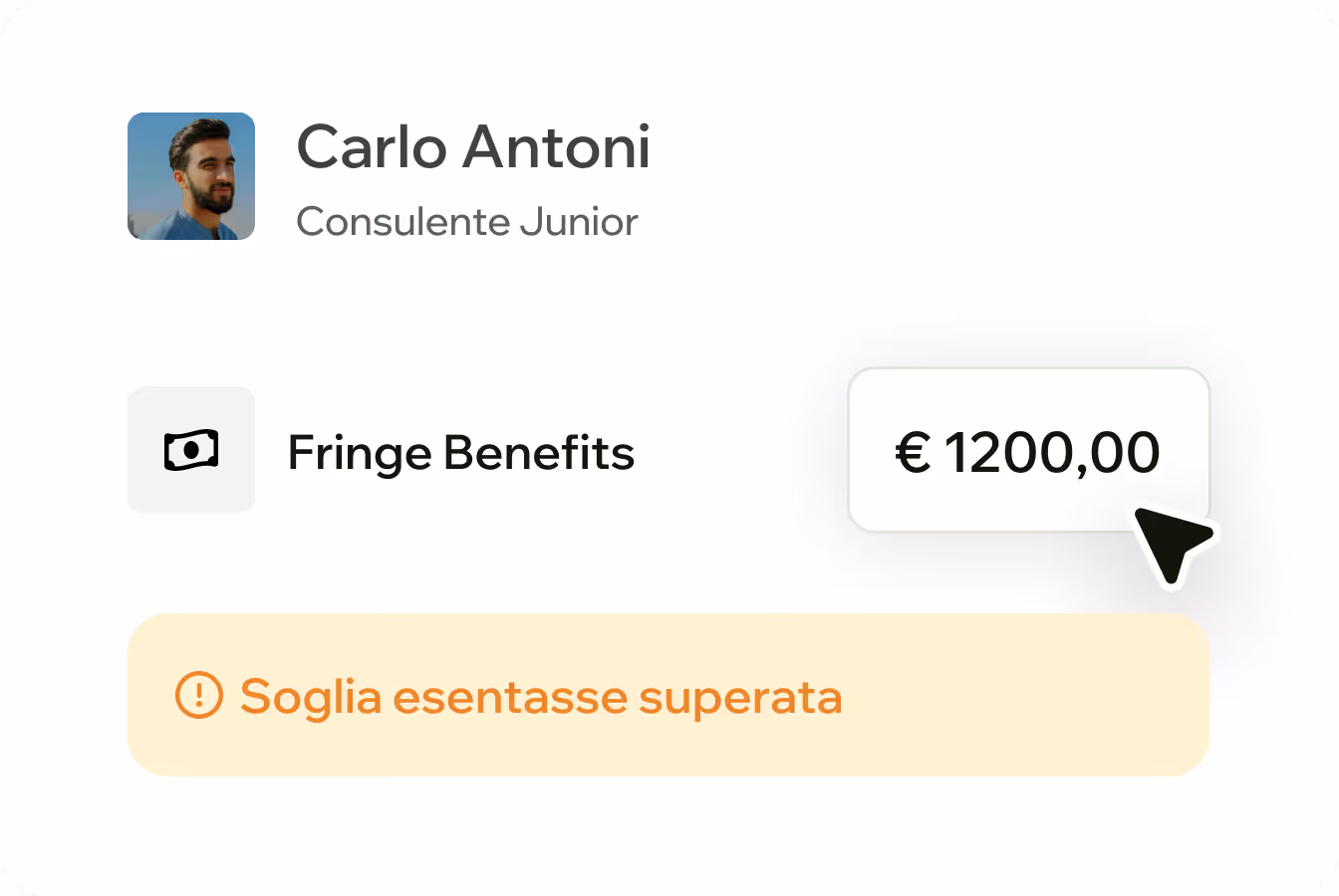 Niente scambi di email. Quando assegni un fringe benefit, questo finisce direttamente nella busta paga del dipendente.