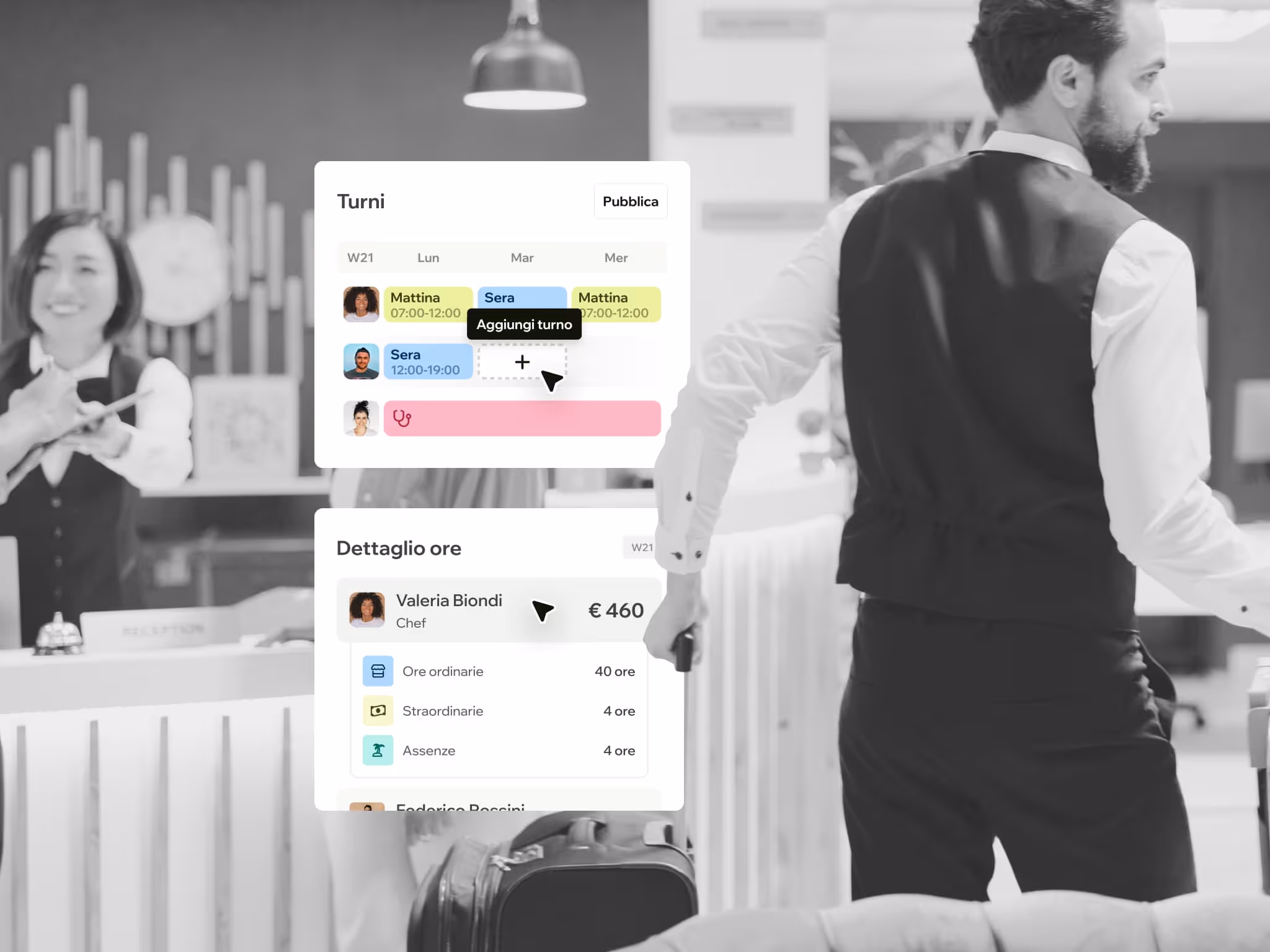 Gestisci assunzioni, turni, contratti stagionali e paghe in un unico posto, con un Consulente del Lavoro che conosce il settore alberghiero e parla la tua lingua.