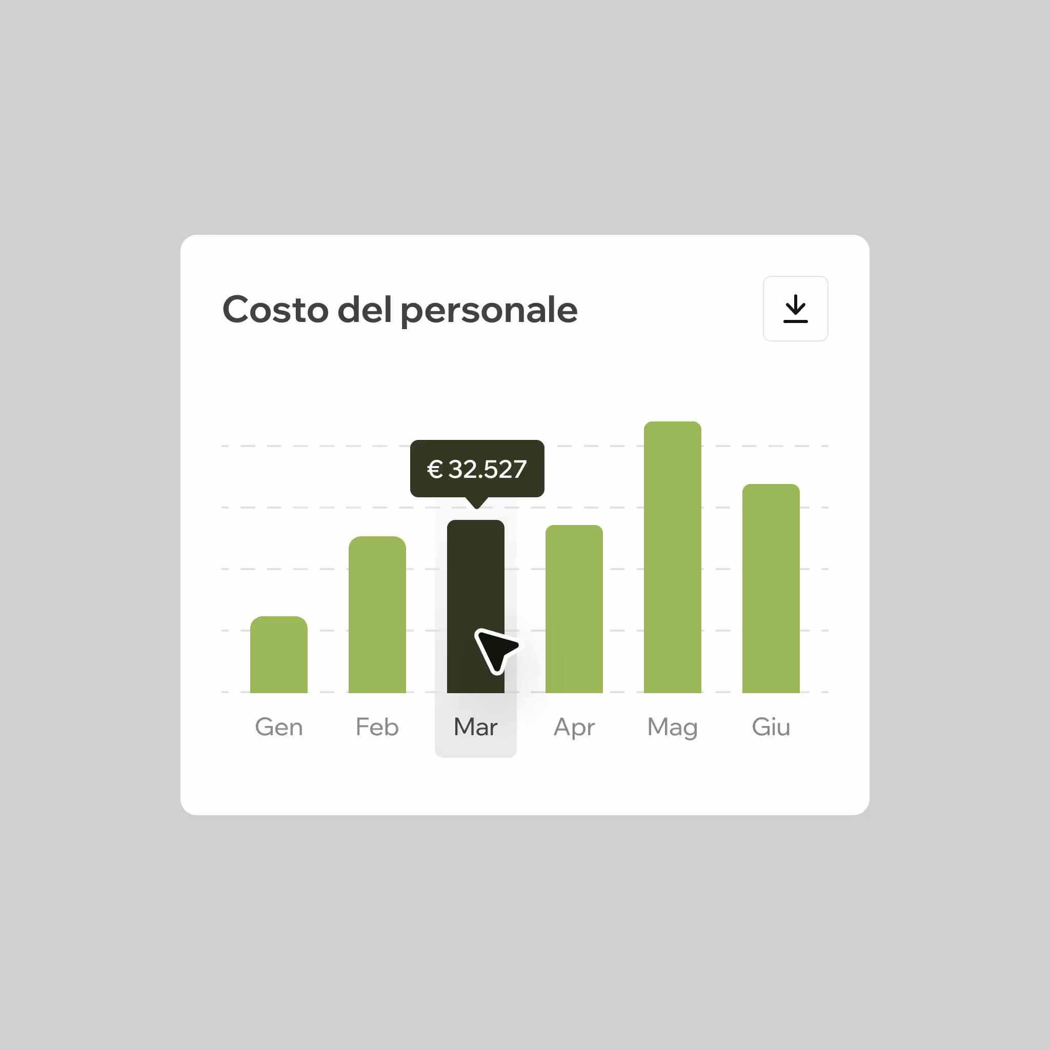 Report sempre aggiornati ti aiutano a capire quanto spendi e a pianificare nuove assunzioni con più sicurezza.