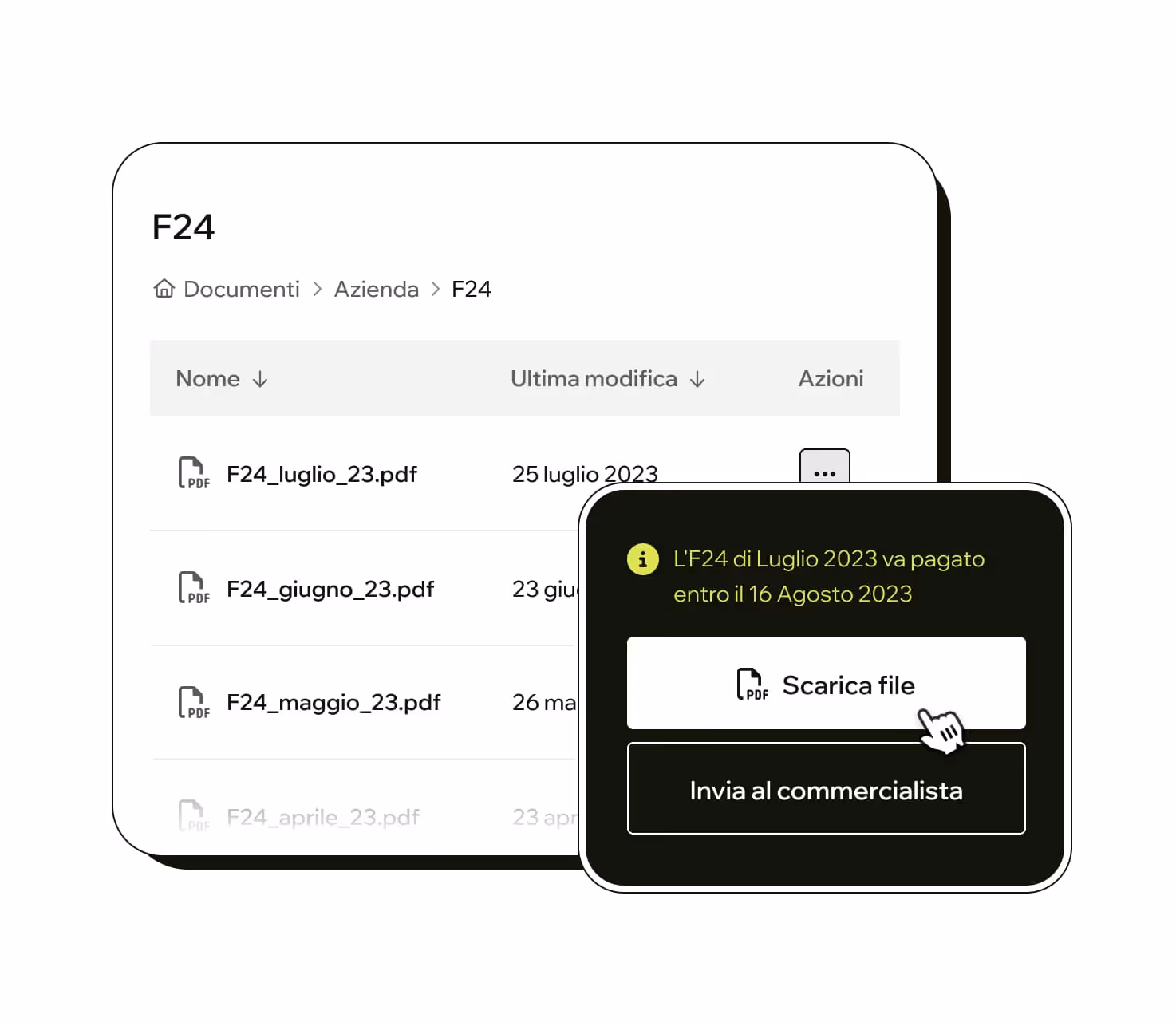 Con Jet HR automatizzi la gestione e i versamenti dei modelli F24 contributivi e fiscali, direttamente collegati a cedolini e costi del personale. Scadenze sempre aggiornate, calcoli precisi e export pronti per la banca o lo studio paghe.